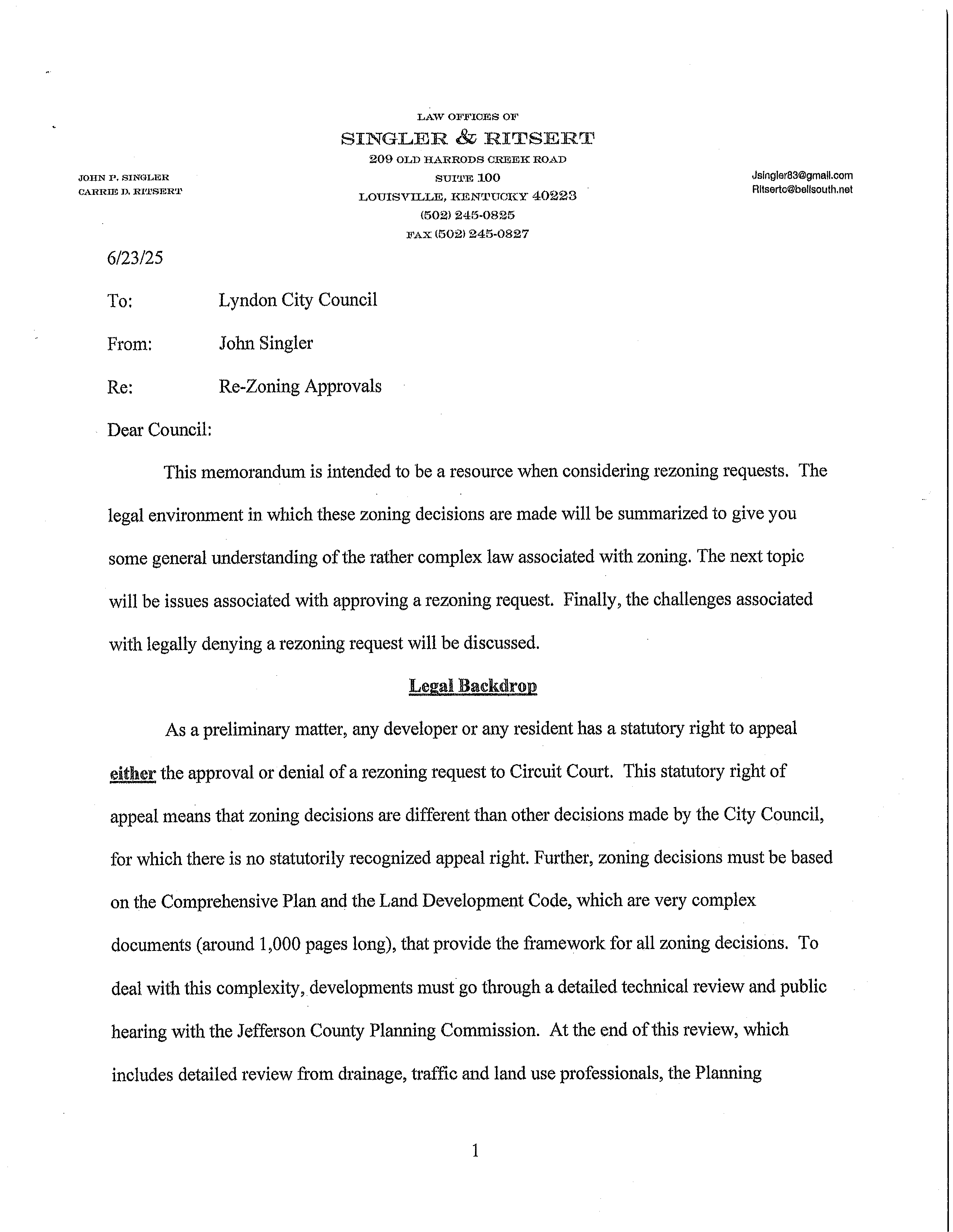 Attorney Memorandum on Zoning Processes